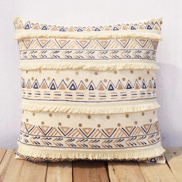 Cuscino decorativo multicolore con pompom e nappe