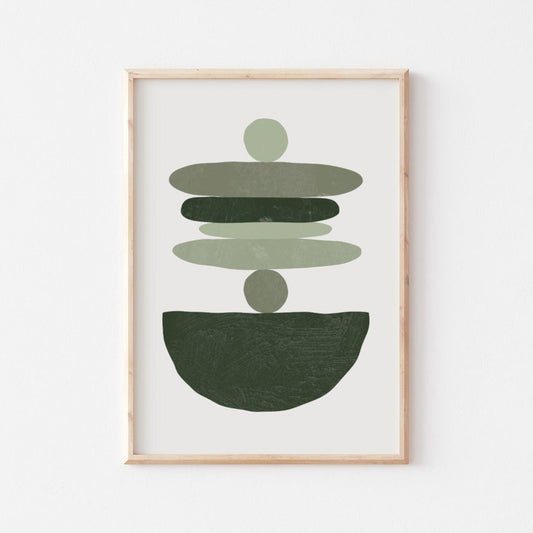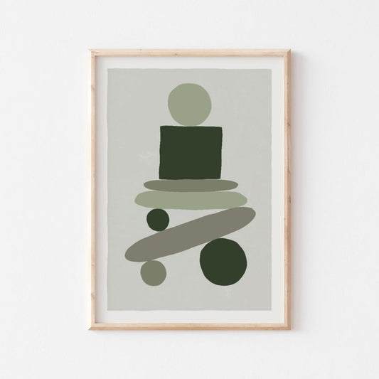 Poster astratto stile nordico - Forme geometriche impilate verde salvia