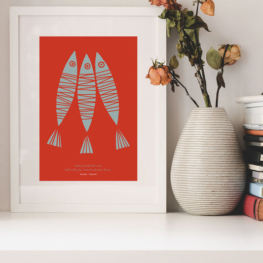 Poster moderno orizzonale stile Japandi - Linee Wabi Sabi rosso mattone