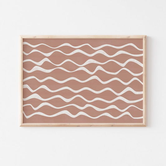 Poster orizzontale stile Japandi - Onde Wabi Sabi rosso mattone