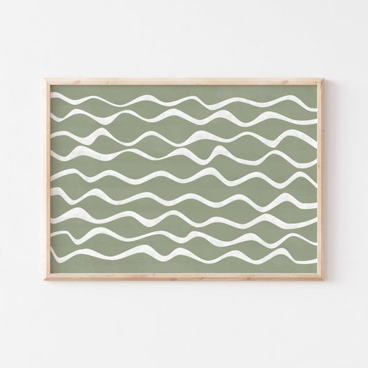 Poster orizzontale stile Japandi - Onde Wabi Sabi verde salvia